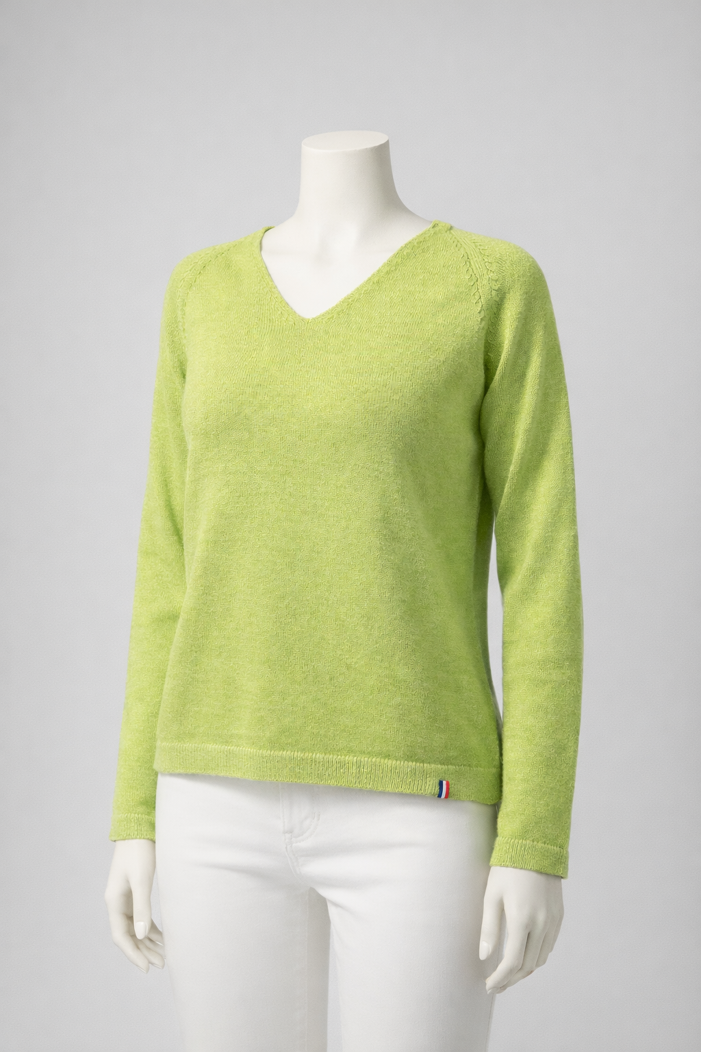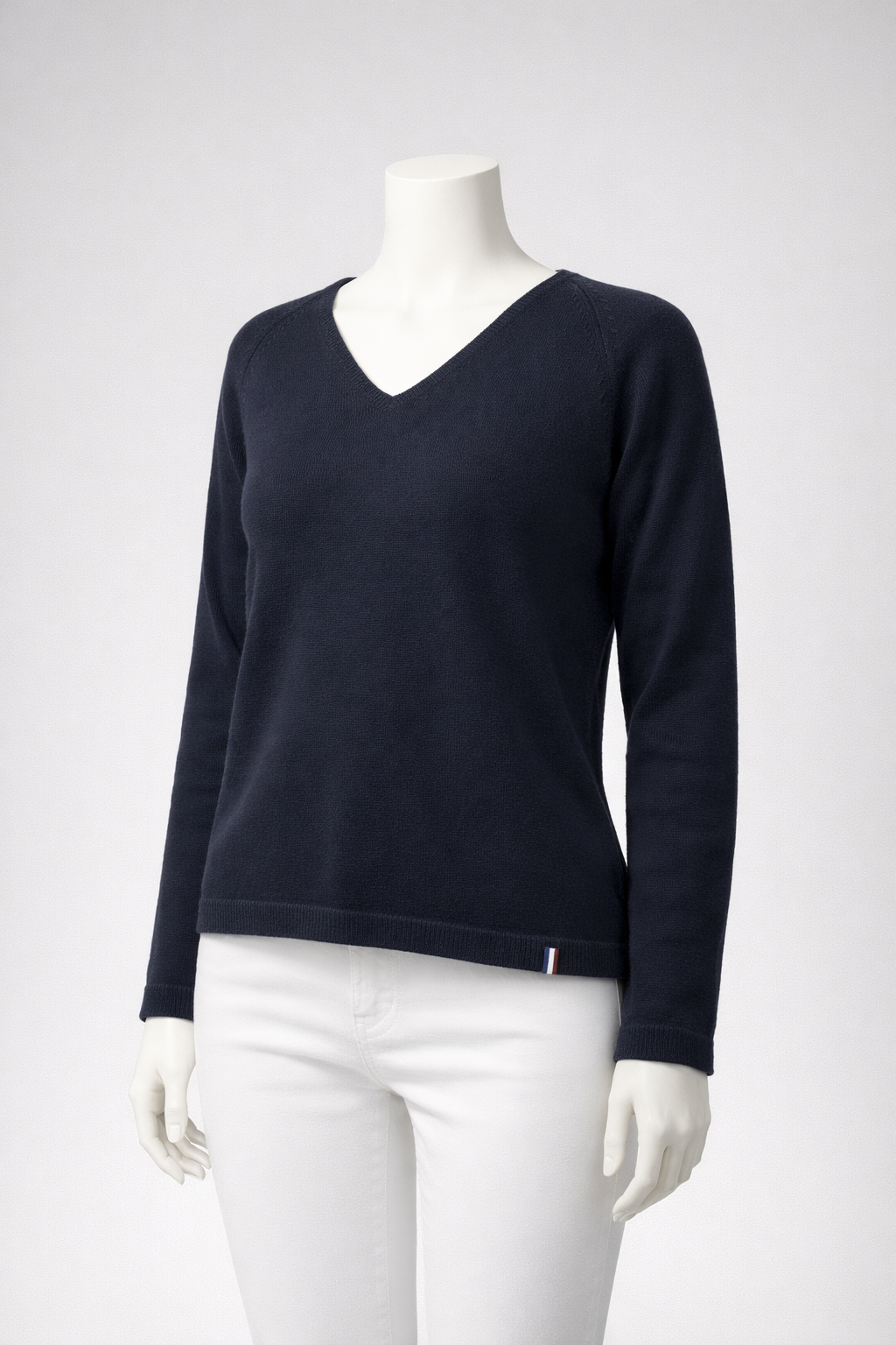 Confectionné dans nos ateliers de Falleron, en Vendée, ce pull est réalisé selon la technique du tricot intégral : une méthode innovante qui permet de le façonner en une seule pièce, manches et col compris, pour un confort optimal et une finition sans couture.